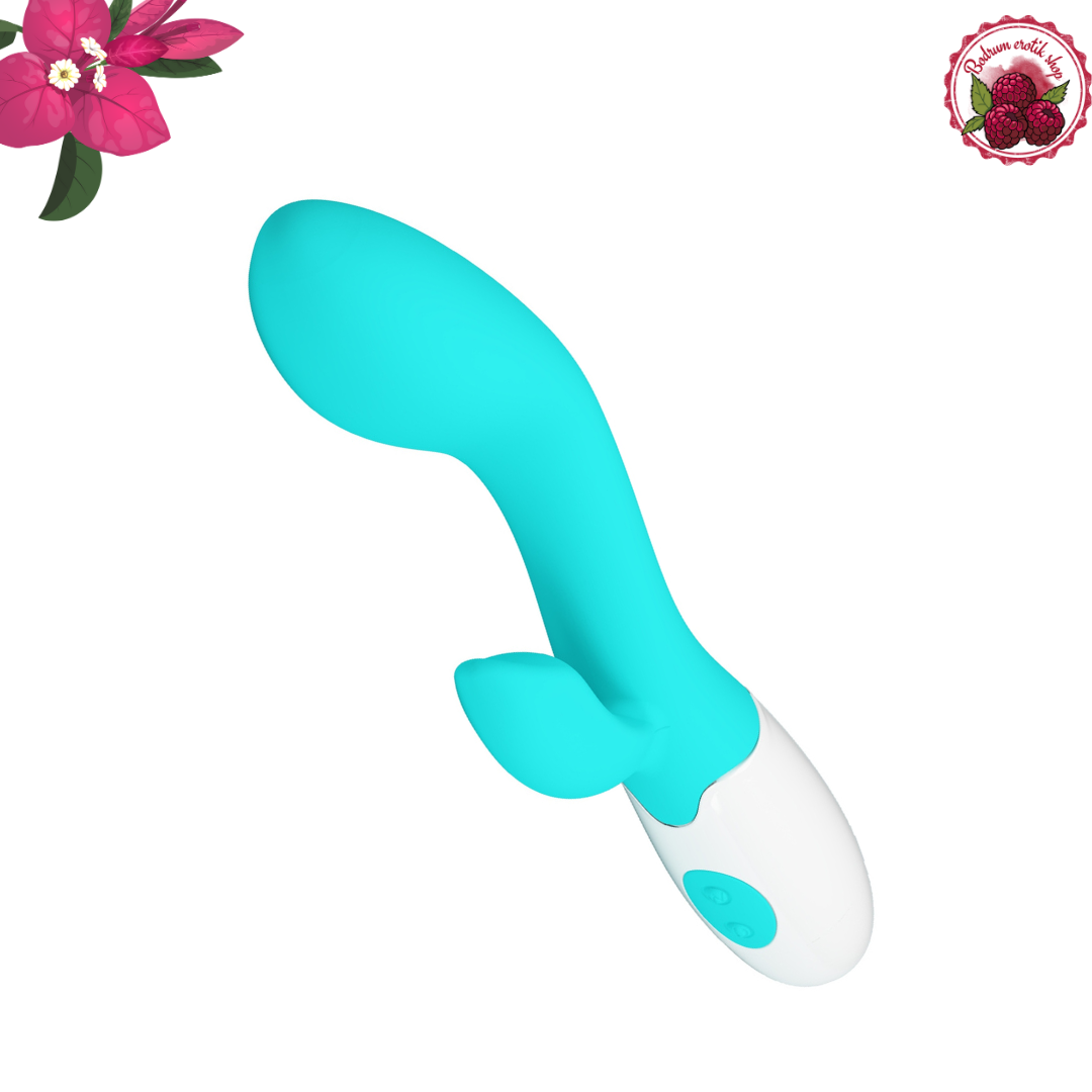 Tavşan Vibratör Turkuaz, zevkiniz ve rahatlğınız için özel olarak tasarlanmış, modern ve şık bir erotik masaj aletidir. İki ayrı başlı yapısı ile hem dış hem de iç uyarım imkanı sunarak, kullanıcıya eşsiz bir deneyim yaşatmaktadır. Göz alıcı turkuaz rengi ile estetik bir görüntü sunan bu vibratör, sadece görünümü ile değil, aynı zamanda performansı ile de dikkat çekiyor.
